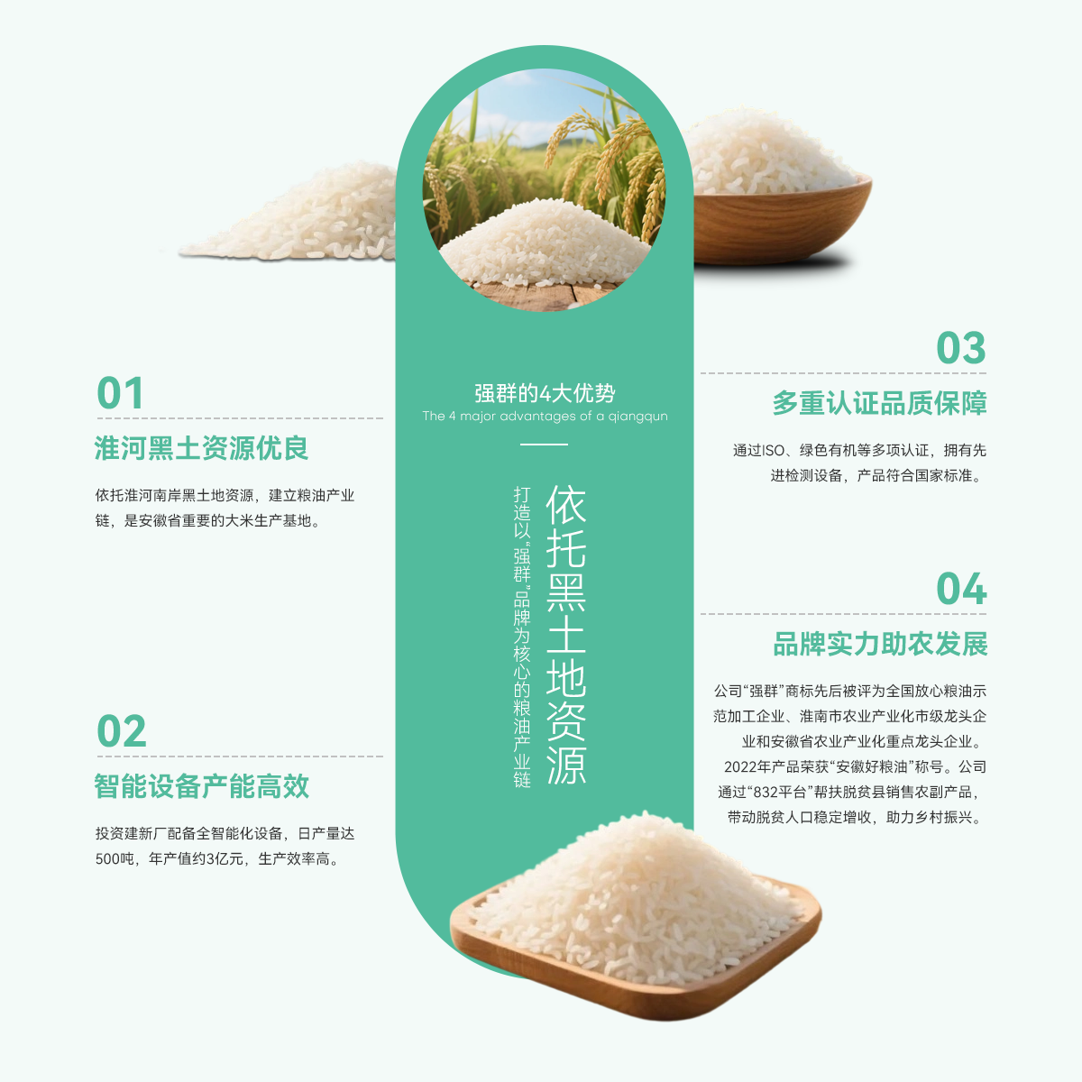 壽縣強(qiáng)群糧油貿(mào)易有限公司成立于2011年,座落在淮南市壽縣澗溝鎮(zhèn),是一家集種植、加工、收儲、銷售于一體、以生產(chǎn)中、高檔質(zhì)優(yōu)、特色類大米為主的綜合性企業(yè)。公司依托準(zhǔn)河南岸的黑土地資源,打造以“強(qiáng)群”品牌為核心的糧油產(chǎn)業(yè)鏈,是安徽省重要的大米生產(chǎn)基地。   為響應(yīng)市場增長需求,公司2021年啟動二期擴(kuò)產(chǎn)工程,其中新生產(chǎn)廠區(qū)建設(shè)投入資金近億元,建設(shè)現(xiàn)代化新生產(chǎn)線,總占地面積約4000...